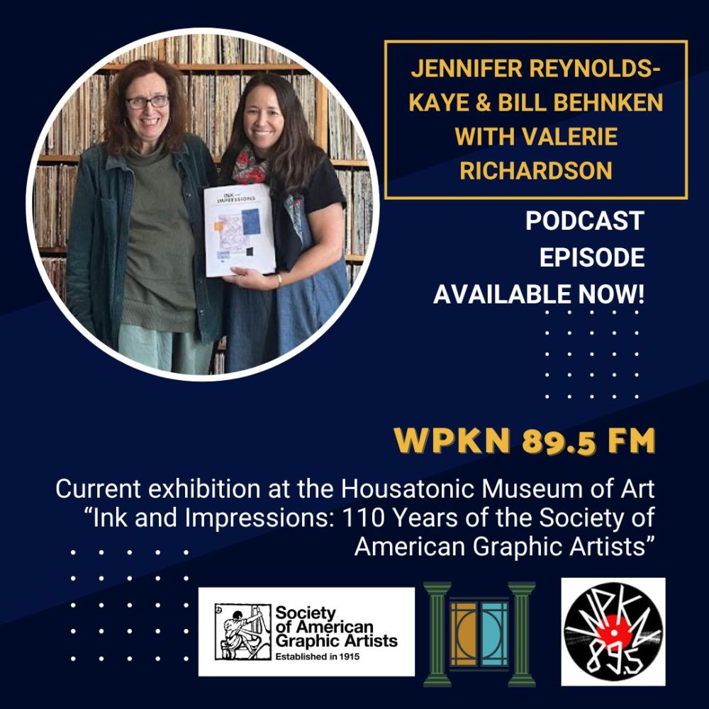 On Tuesday, September 9, 2025, at 4:00 PM, Housatonic Museum of Art Director Dr. Jennifer Reynolds-Kaye joined Valerie Richardson on WPKN radio to discuss the exhibition *Ink and Impressions: 110 Years of the Society of American Graphic Artists*. She was joined by former SAGA president Bill Behnken for a conversation about the history of printmaking and the significance of this landmark exhibition, which opened the following day, September 10, 2025, in Bridgeport, CT.